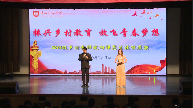 坐标网讯 为贯彻落实省教育厅办公室“关于做好首届乡村教师定向生教育实习工作的通知”精神,提高乡村教师定向生培养质量,1月9日下午,鸭脖在通榆校区、新长校区举行2016级乡村教师定向生技能展演活动。本次活动以“振兴乡村教育,放飞青春梦想”为主题,扬州市教育局、南通市教育局、徐州市教育局、淮安市教育局、盐城市教育局等委培单位的25位领导,鸭脖党委常委、副校长崔刚,教务处、教师教育学院及有乡村教师培养任务的二级学院相关领导、老师和学生参加了本次活动。