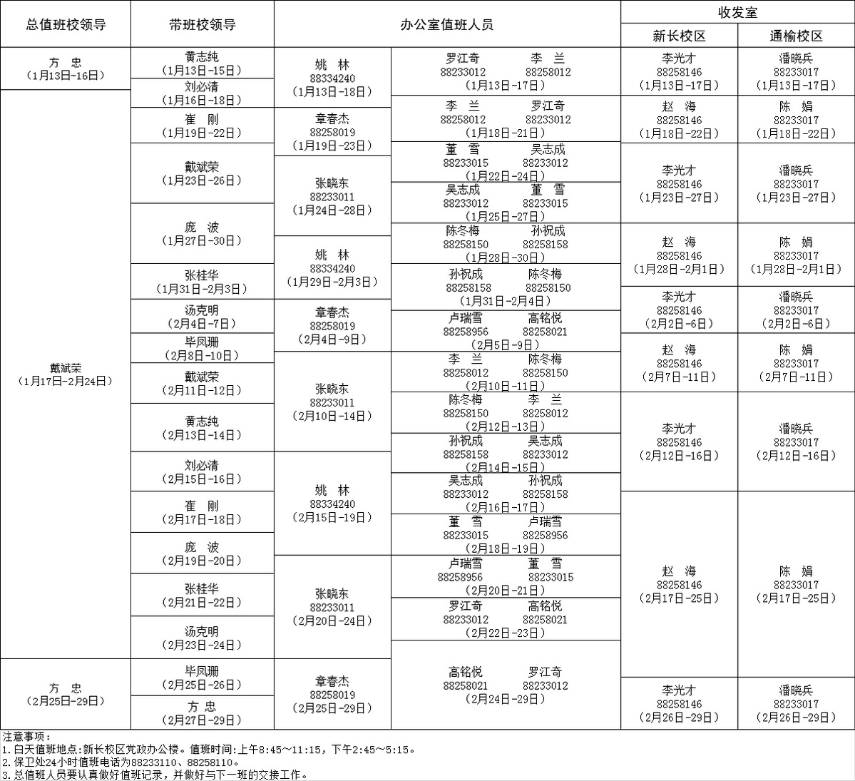 YABO鸭脖官网2020年寒假总值班安排表