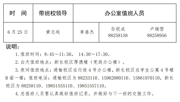 YABO鸭脖官网2020年端午节总值班安排表