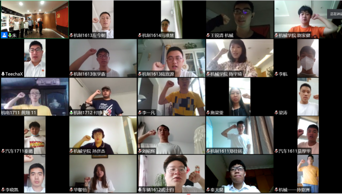 董俊华校友分享了机制8007班优秀校友的成长经历、个人工作感悟,勉励毕业生党员勇敢接受社会的考验,选准发展方向、注意团结合作、工作细致、精益求精,在工作岗位上勇于担当、敢于奉献,在自己今后的职业岗位中发挥先锋模范作用。接着毕业生党员代表许忆枫发言表示一定不忘初心牢记使命在工作岗位上展示电机学院党员的风采,在校发展对象孙彦杰发言祝福毕业生党员并表示向党员校友学习、毕业生党员学习,早日成为一名合格的共产党员。随后全体党员在董俊华的带领下,重温了一遍入党誓词,经历了一场心灵的洗礼。