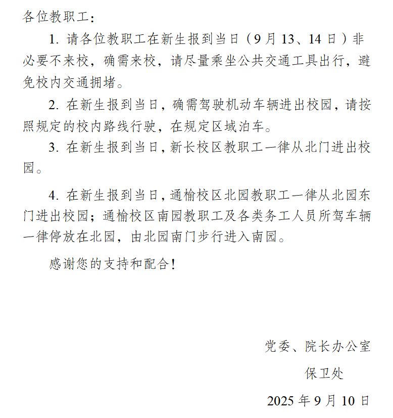 关于新生报到日校园交通安全提示