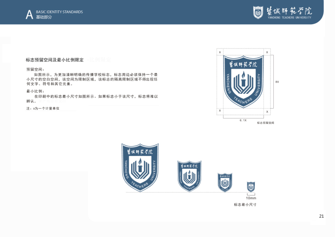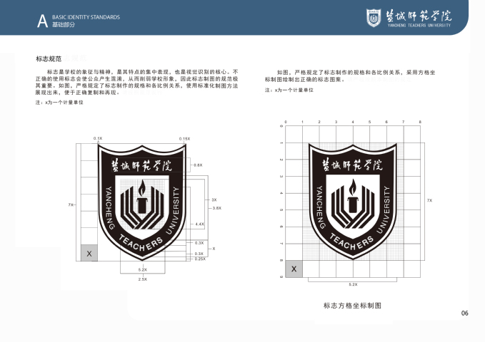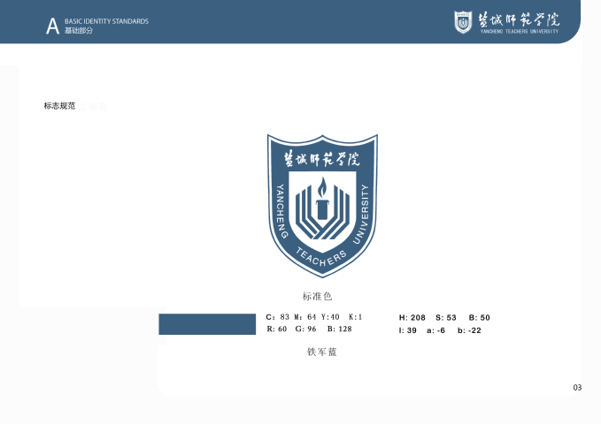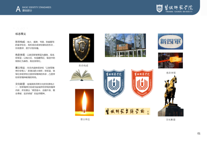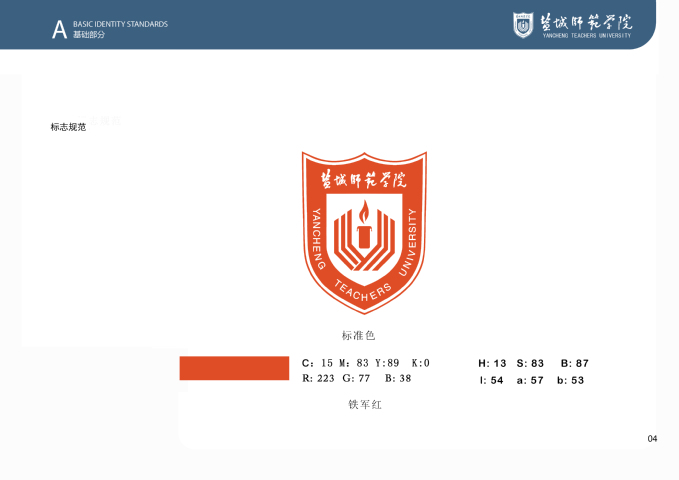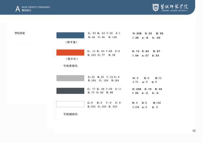 鸭脖VI系统基础部分将学校标准色设定为“铁军蓝”与“铁军红”,主辅助色为“铁军灰”;VI系统基础核心元素方案包括校标、校名、校标校名组合及其与各部门、单位名称组合使用规范,以及字体、象征图形、校旗等,明确和规范了学校主要标识的样式和使用方法。